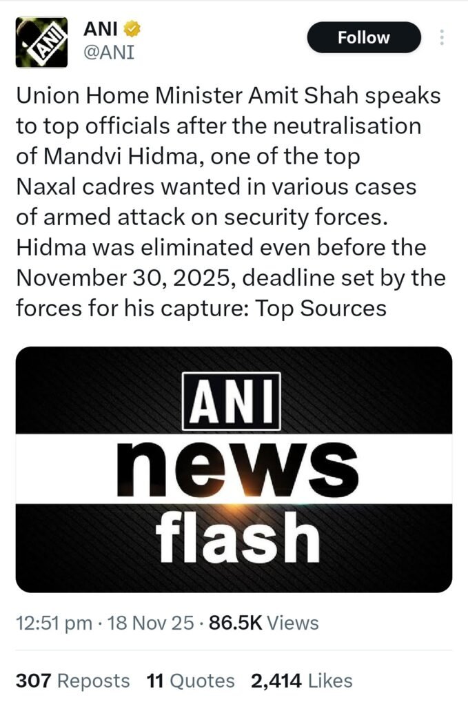 क्या आप इस विषय पर और अधिक जानकारी चाहते हैं, जैसे कि हिड़मा के मारे जाने पर राजनेताओं की प्रतिक्रिया?