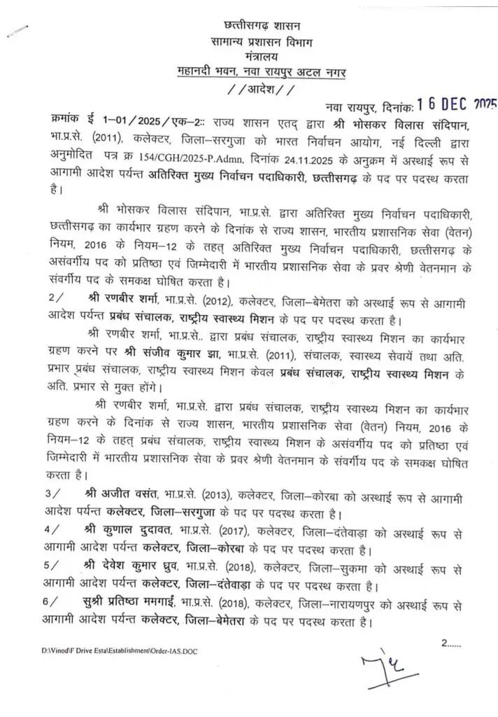 सरगुजा कलेक्टर समेत 11 IAS अधिकारियों के तबादले, देखें आदेश…